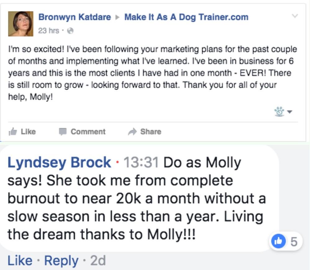 There are literally dozens and dozens of emails, messages, facebook posts, videos, stories and pictures like these. If you'd like more proof and reassurance, feel free to post in this facebook group and ask for feedback on who has done Molly's workshops and what they think.