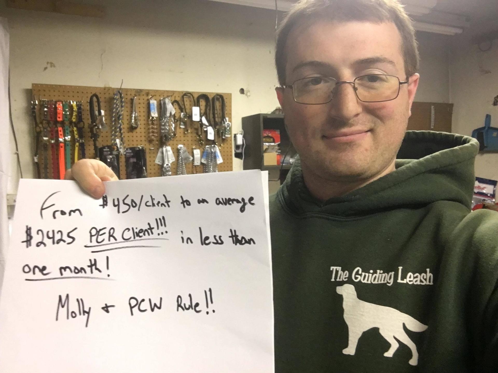 Offering our own dog training clients really well-designed dog training programs allowed us to charge a range of prices up to nearly $4k per dog. Regular family dogs with normal, run-of-the-mill unwanted behaviors. Regular, middle-class, normal owners.